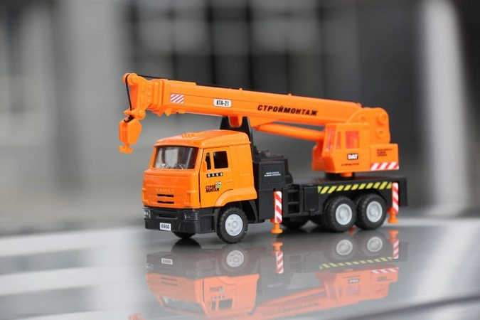 Это – масштабная модель автомобиля КАМАЗ. Она классная. У нее открываются двери и горят фары!