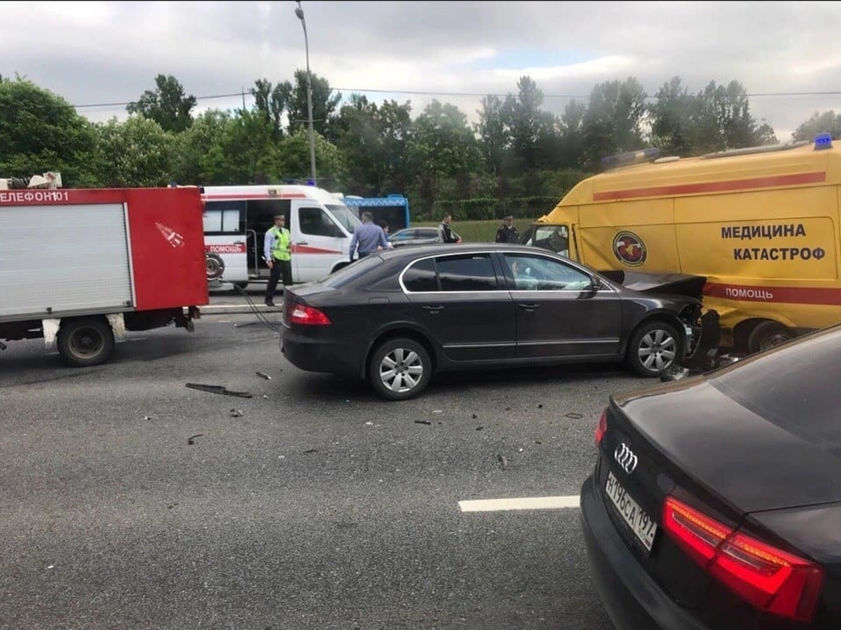 Дорожно-транспортное происшествие с участием шести автомобилей и машины скорой помощи было зафиксировано на пересечении Кутузовского проспекта и Минской улицы. В момент аварии в скорой находились три медика и один пациент.