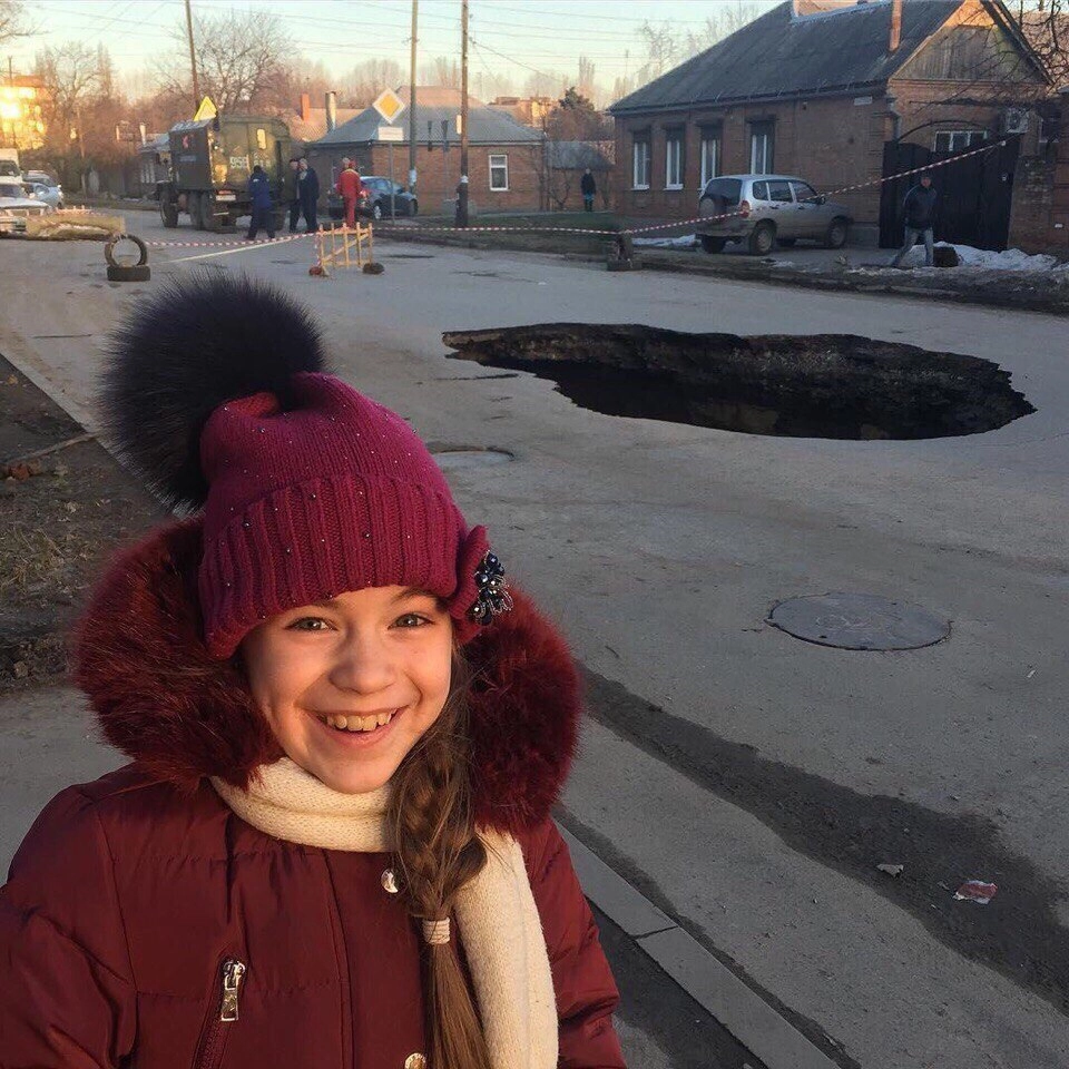 На одной из улиц Таганрога провалился асфальт. Местные жители говорят, что обрушаться он начал еще несколько недель назад, а 13 марта превратился в огромную яму диаметром в полметра и глубиной около 10 метров.