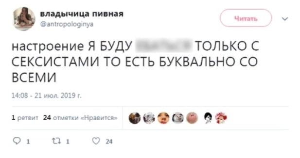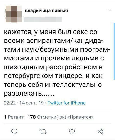 Twitter Любови Фроловой действительно производит впечатление эпатажного. Темы секса и алкоголя красной нитью проходили через ее записи. Сейчас «владычица пивная» закрыла свой аккаунт для просмотра посторонними.