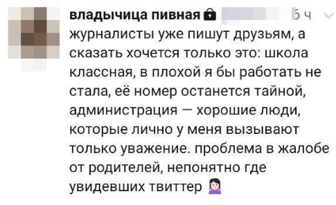 При этом многие ученики считают, что претензии к педагогу были вполне справедливы, особенно если страница с провокационными постами была открытой: «А кому бы понравилось, что она написала?» Тем не менее даже они говорят, что жалеют об увольнении Фроловой.