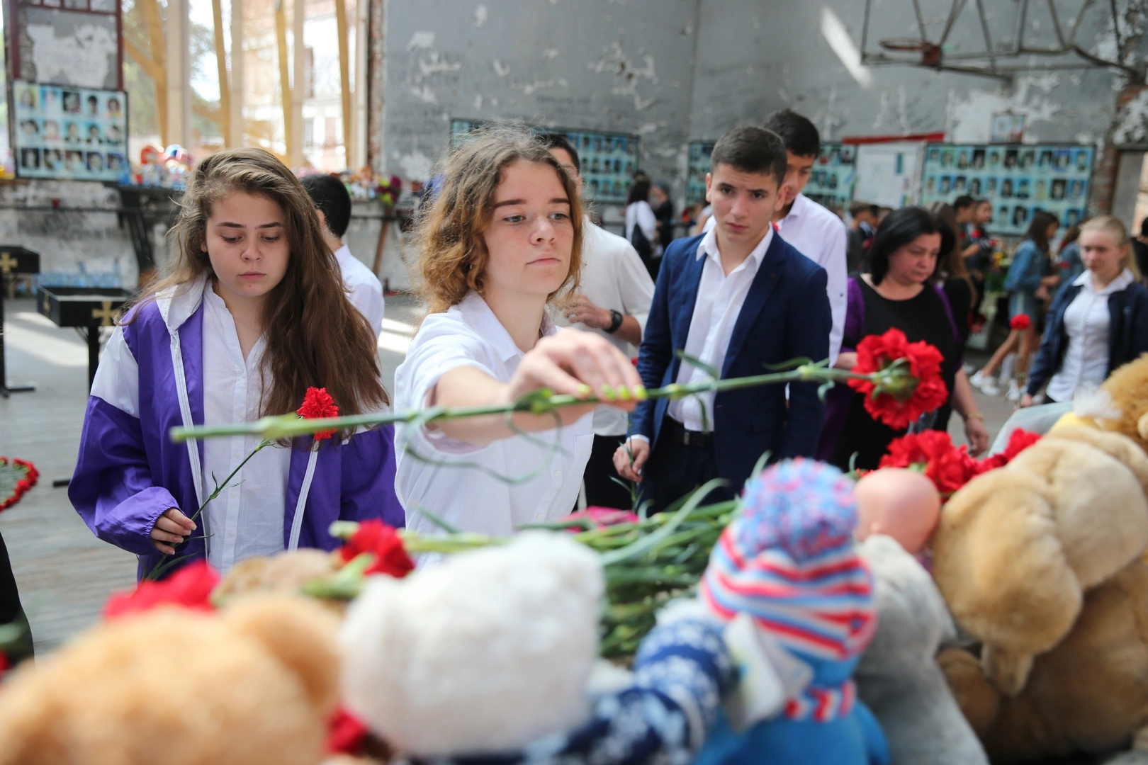 В Бесланской школе № 1 началась традиционная трехдневная вахта памяти жертв теракта в Беслане. Сегодня ровно 16 лет со дня трагедии, унесшей жизни 333 человек, среди которых было 186 несовершеннолетних детей. В 09:15 в разрушенном здании прозвучал школьный звонок. Именно в это время 1 сентября 2004 года раздались первые выстрелы террористов.