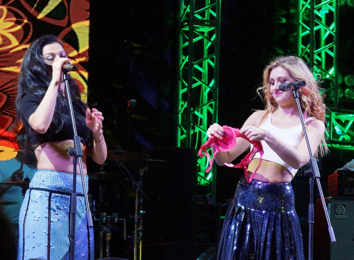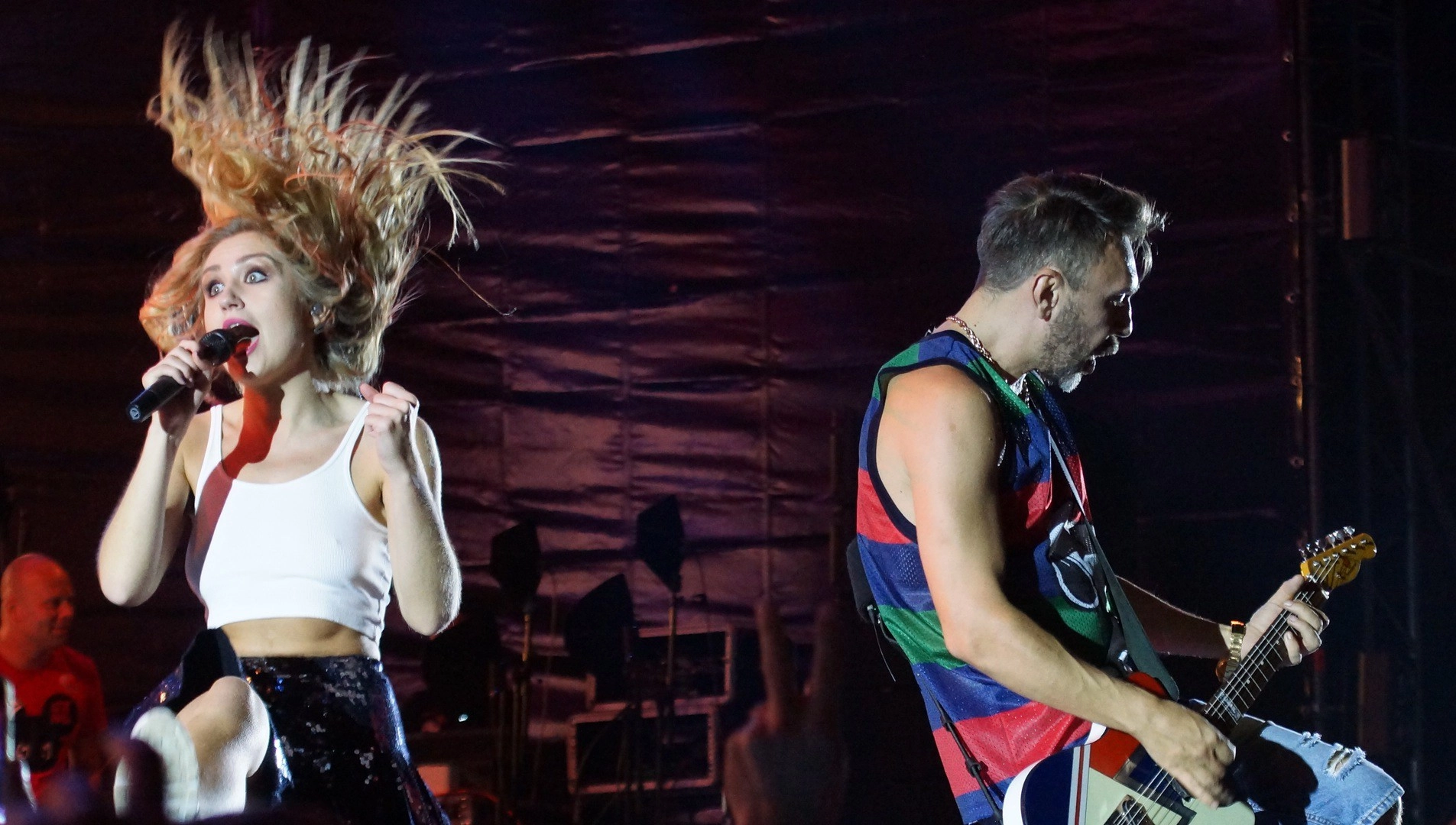 В Абрау группировка прибыла в новом составе: ушедшую исполнительницу знаменитого «Экспоната» (на лабутенах) Алису Вокс заменили сразу две вокалистки — Василиса Старшова и Флорида Чантурия.