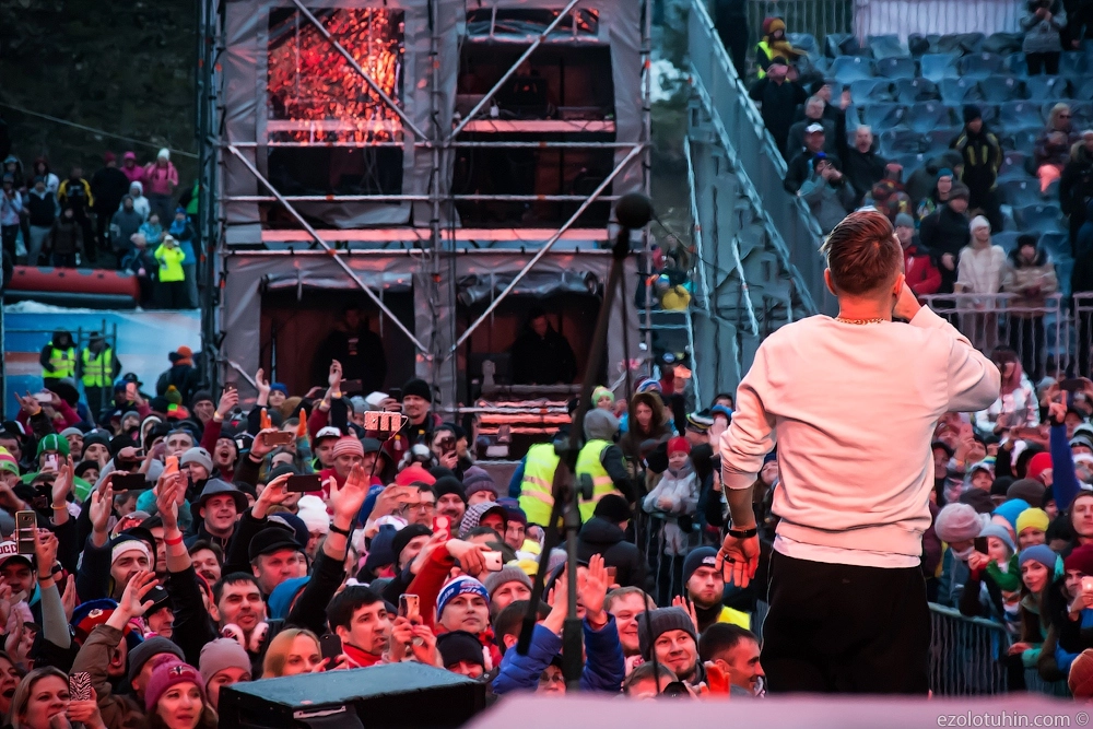 Сергей Шнуров и группировка «Ленинград» выступили в Шерегеше — это поселок в Таштагольском районе Кемеровской области, что у подножия горы Зеленая.
