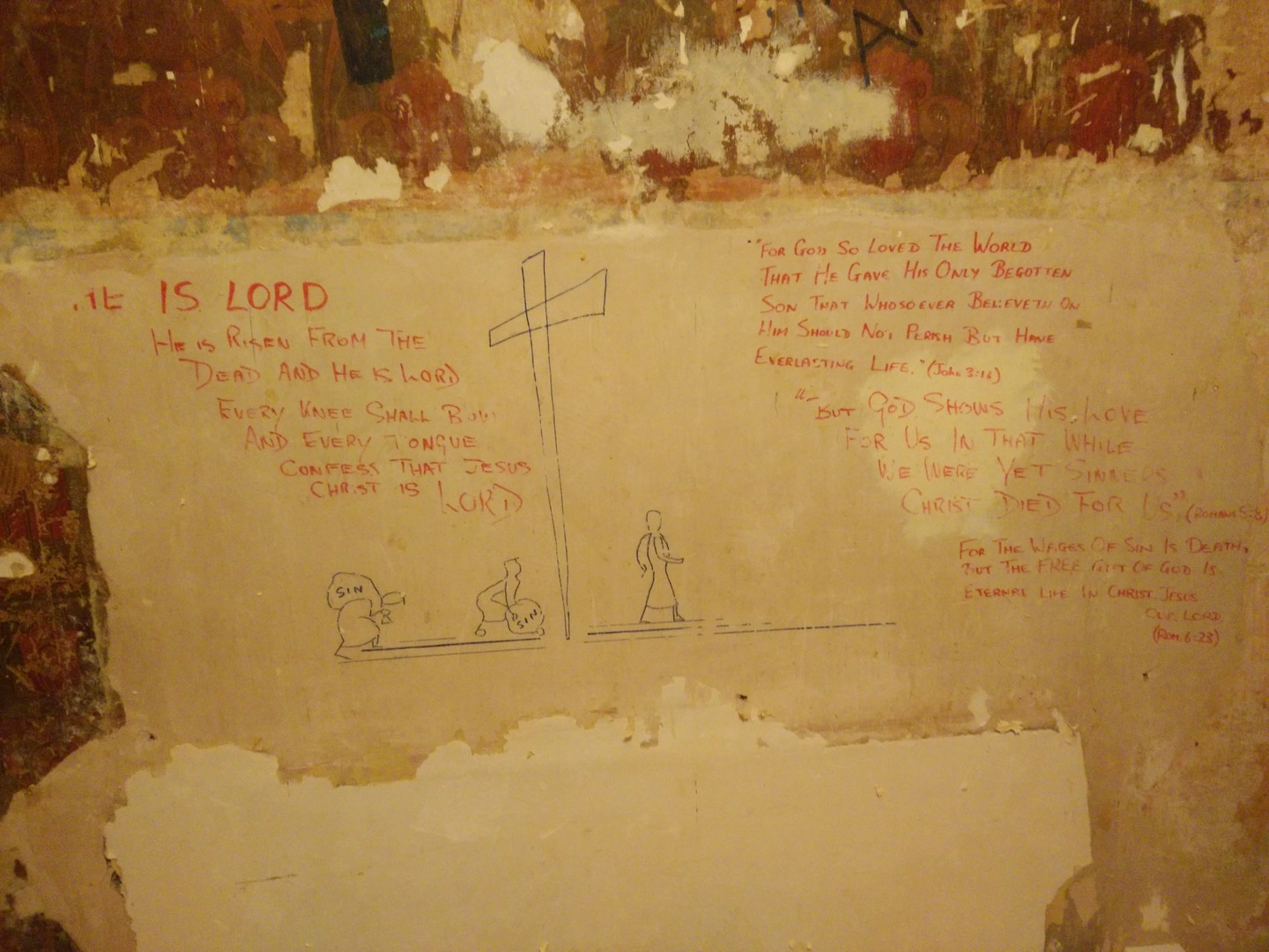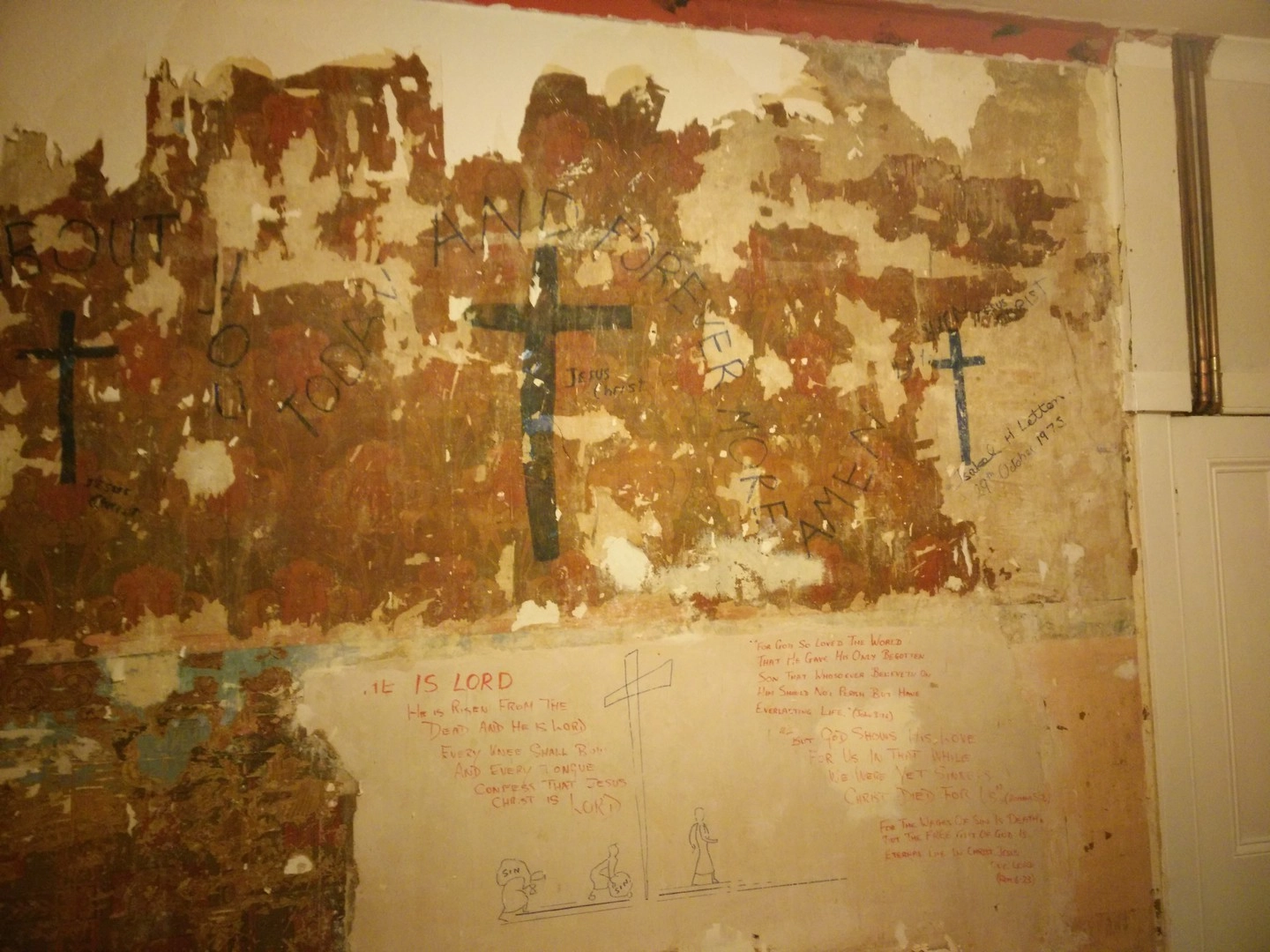 Под несколькими слоями видавших виды обоев парень увидел пугающие послания с религиозными символами. Шотландец первым делом подумал о том, что много лет назад в доме жили служители какого-то культа, и поклонялись они отнюдь не единорогам.