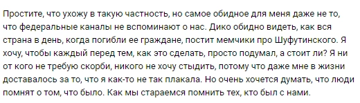 Одно другого совершенно не касается. У меня есть память, у всех есть память о погибших в Беслане, мы ее чтим, — сказал «Ридусу» Шуфутинский.