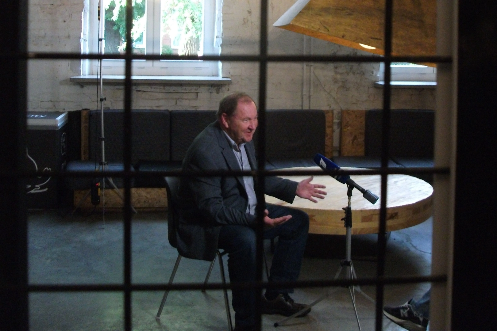 Режиссёр Рой Андерссон даёт телевизионное интервью на премьере в Москве