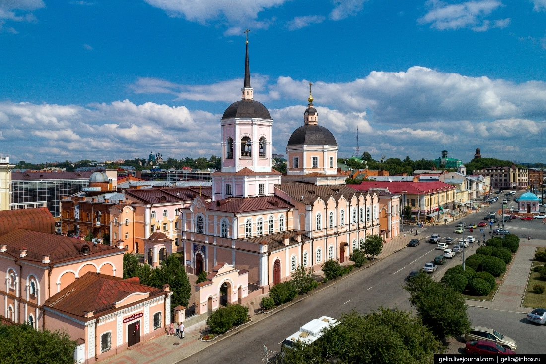 13. Богоявленский собор, один из древнейших храмов Томска. В 1630 году на его месте стояла деревянная церковь, а в 1777 году заложили нынешний каменный собор. Его нижний этаж был освящён в 1784 году в честь Богоявления Господня. В 30-е годы собор закрыли для богослужений. Сначала в нём проводили курсы Сибжелдорстроя. Позже в здании заработала вермишелевая фабрика, в 1942 году её сменил эвакуированный завод «Красный богатырь», а с 1947 по 1994 годы здесь размещалась фабрика резиновой обуви. В 1997 году церковь начали восстанавливать.