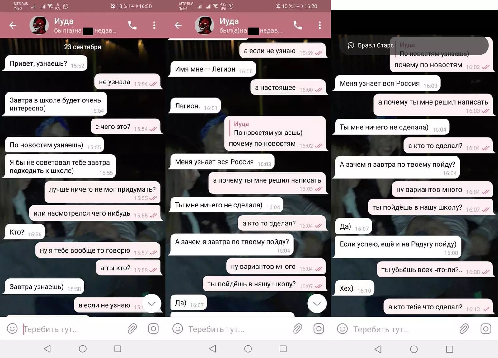 Я бы не советовал тебе завтра подходить к школе… Имя мне Легион… Меня узнает вся Россия, — угрожал незнакомец подросткам.