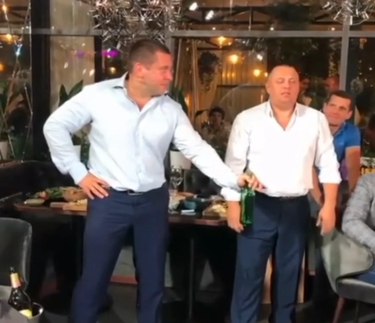 Судя по всему, действие происходит на каком-то празднике. Мужчины шутят с гостями и показывают необычный фокус. Комментаторы платформы предположили, что бутылка не могла разбиться сама по себе: