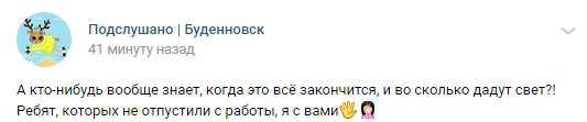 Официально сообщений о пострадавших нет. Но в местных сообществах в социальных сетях жители Буденновска пишут также об одном погибшем в городе и отключениях электричества.