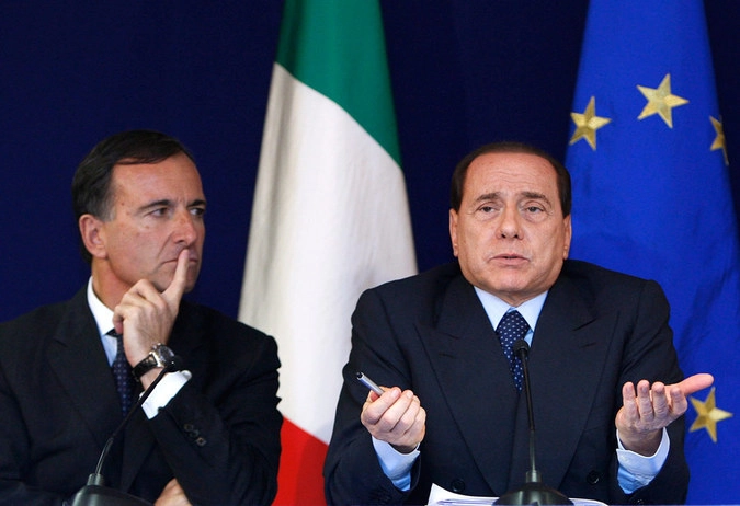 Министр иностранных дел Италии Марко Фраттини (слева) и премьер-министр Италии Сильвио Берлускони (справа). © Yves Herman/Reuters
