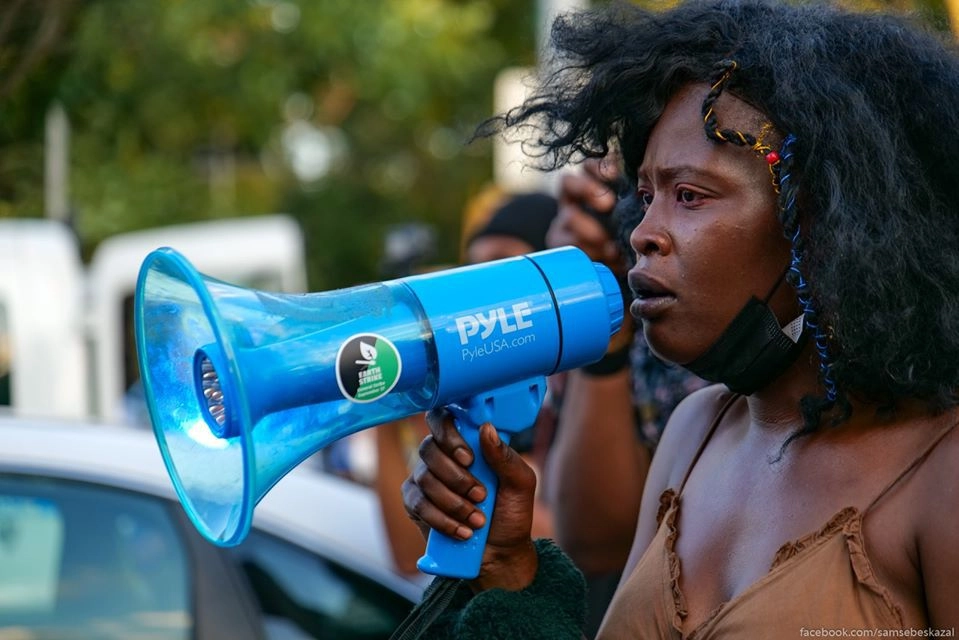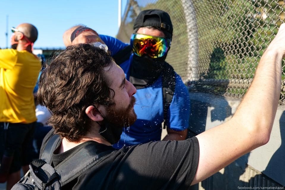 Народ колонной пошел в сторону местного полицейского участка, где произошло столкновение с сторонниками движения BLM, которые не могли оставить такое событие без своего внимания.