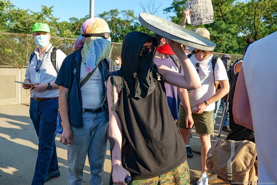 BLM-щики совершенно случайно надели каски, защиту и взяли в руки щиты. Полиция вышла вообще без спец одежды.