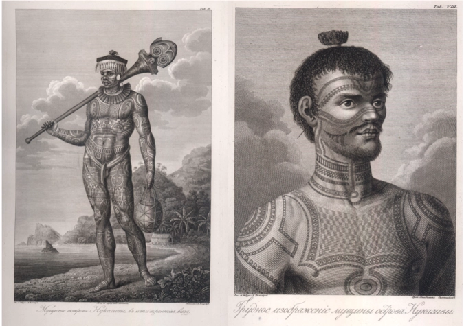 Кроме этого упоминания, татуировка в России появляется лишь в XlX веке, когда гвардейский поручик граф Федор Толстой на стоянке у острова Нукагива во время кругосветного путешествия привез на корабль «Надежда» местного мастера и забил себе все тело. Его примеру последовали многие матросы, что «парализовало» команду. Татуировка в те времена наносилась болезненным путем надрезов осколками раковин и заливание едких красящих пигментов. Экипаж был нетрудоспособен. График похода шел «коту под хвост». Капитан корабля Иван Крузенштерн негодовал. В будущем это придало яркости рассказам графа, когда он охотно демонстрировал свое тело в аристократических салонах по просьбам гостей.
