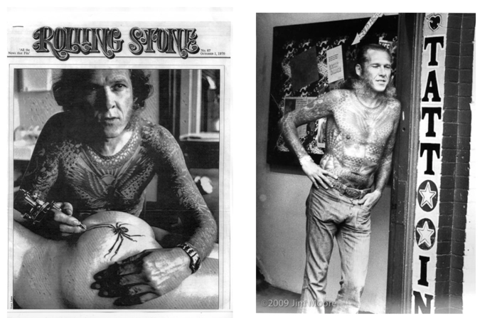 Для художественных фотосъемок стали прибегать к боди-арту, чтобы создать брутальный образ. В 1970 году на обложку «Rolling Stones» впервые попал татуированный человек. Это был мастер и основатель тату-музея Лайл Таттл. Множество рок-звезд в те времена стали счастливыми обладателями его работ, в том числе Шер, Дженис Джоплин, Генри Фонда.