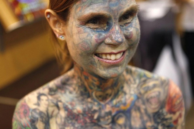 Самой татуированной женщиной в мире считается 59-летняя Джулия Гнусе. Ее история отличается от Лаки. Редкое генетическое заболевание — порфирия — задало вектор жизни Джулии. Заключается оно в том, что кожа лопается под воздействием солнца. Чтобы скрыть множественные шрамы тридцатилетняя девушка начала покрывать свое тело изображениями персонажей из американских телешоу, фильмов и анимаций. Более четырех сотен татуировок спасли Джулию от комплексов и уродливых шрамов.
