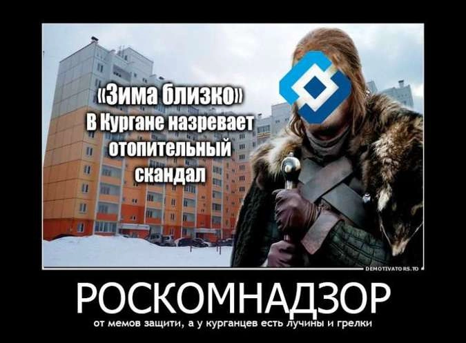 Власти Кургана пожаловались в Роскомнадзор на мем, где сити-менеджер Андрей Потапов изображен в образе героя сериала «Игра престолов» Эддарда Старка. Возмущение администрации вызвал материал ИА «Уральский меридиан» — «Зима близко. В Кургане назревает отопительный скандал».