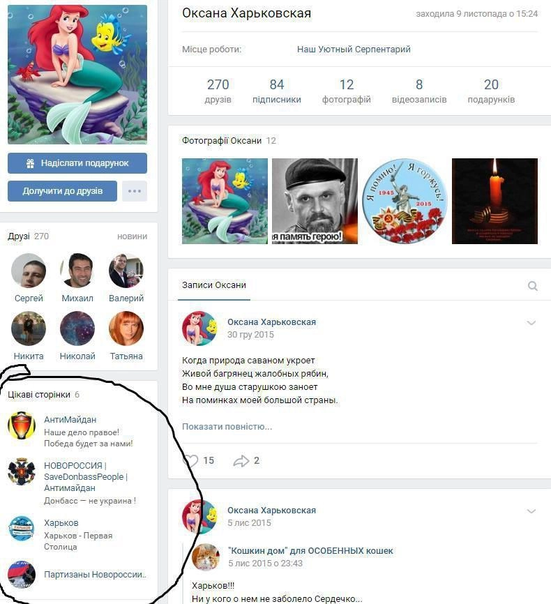 На страницах в соцсетях „ВКонтакте“ и „Одноклассники“ она выражает поддержку пророссийским бандформированиям, которые оккупировали отдельные районы Донецкой и Луганской областей, — говорится в сообщении студентов.