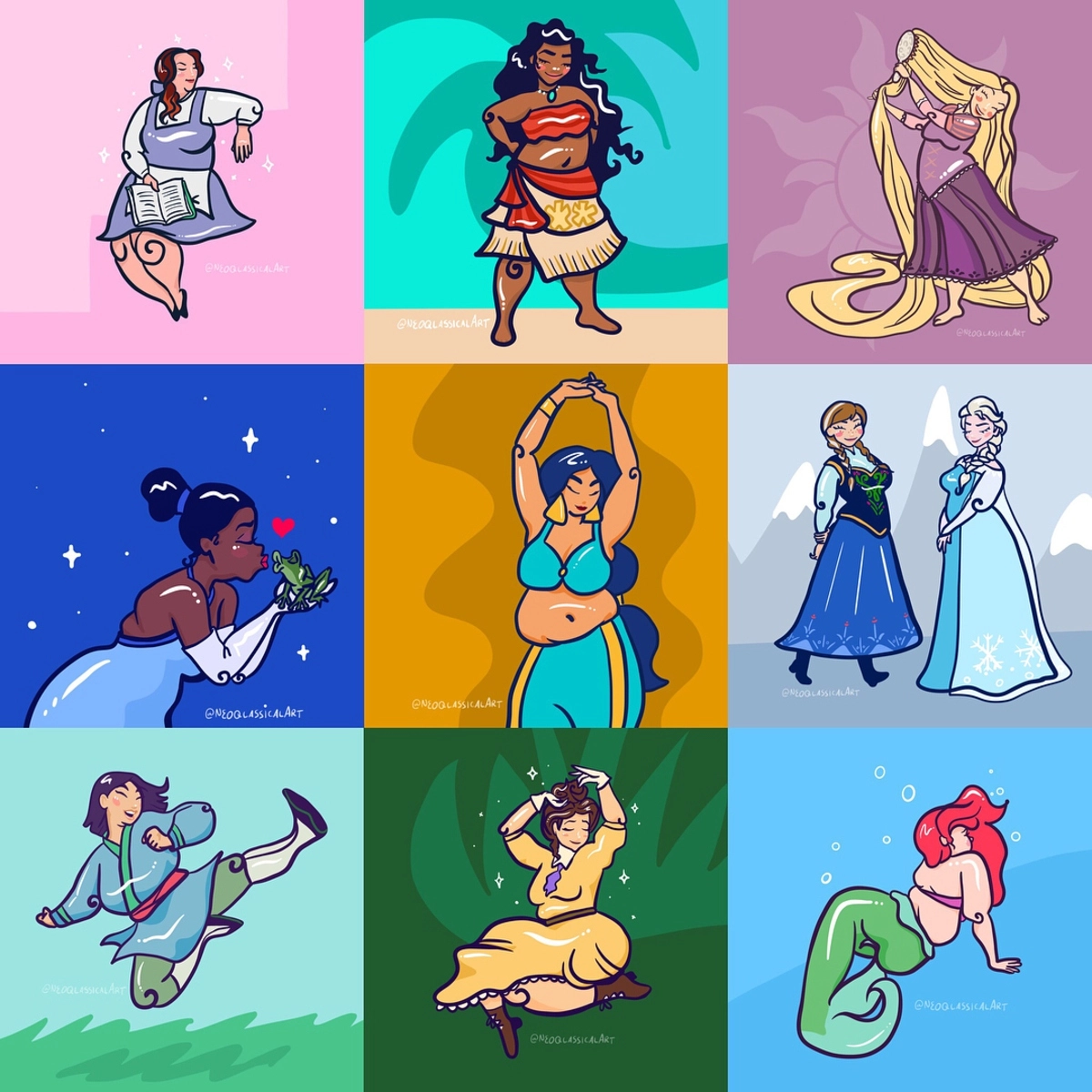 В каких образах только не изображали диснеевских принцесс — и героинями фильмов ужасов, и звёздами журнала Playboy. Художница с ником Neoqlassicalart превратила сказочных красавиц в обладательниц размера «плюс». Ведь в мире полно поклонников, как стройности, так и пышных форм. Посмотрите серию иллюстраций и скажите, к кому относитесь вы?