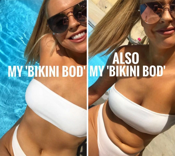 «Пару лет назад я бы ни за что на свете не опубликовала такое. Всё, о чем я думала и заботилась, — это быть худой, как можно чаще ходить в спортзал и считать каждую съеденную калорию. Теперь я хочу быть счастливой. В том теле, которое дала мне природа. Пусть оно не идеально, но я люблю его».