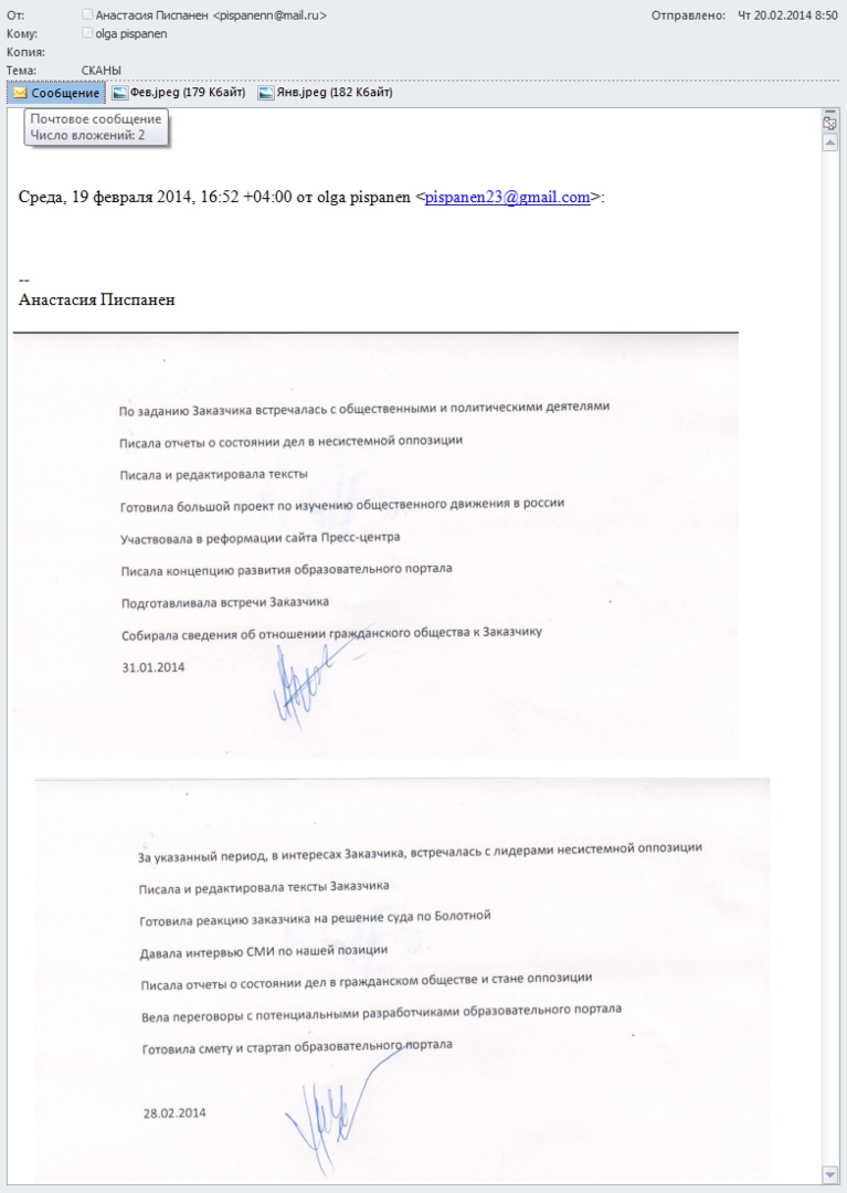 «Ну и в заключении. На кого работает российская несистемная оппозиция?», — вопрошают украинские хакеры, публикуя одно из последних писем во вскрытой переписке Писпанен: