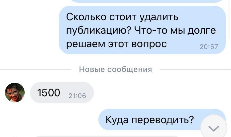 «Таких, как ты, надо наказывать. Если хочешь, то можешь удалить фото за деньги. Вот, пиши админу», — со злобой ответил Рамазан и скинул контакт администратора паблика.