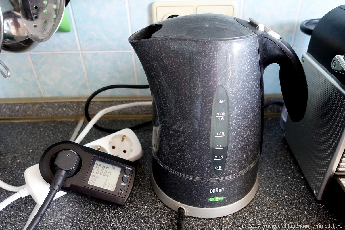 Мой чайник Braun имеет заявленную мощность 3000 Вт, при этом фактическая потребляемая мощность составляет 2600—2700 Вт.