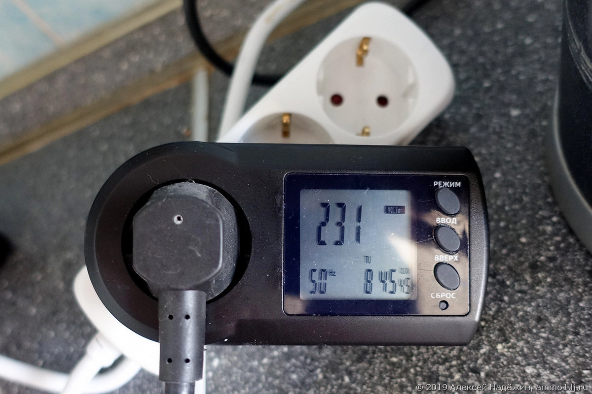 Во время эксперимента напряжение в сети колебалось от 228 до 231 В.