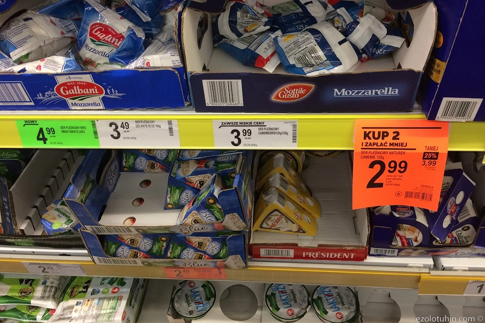 После введение санкций больше всего россияне сожалели о молочке, в Польше с ней все в порядке-йогурты, молоко, сыр, есть все. В Польше в ходу местные деньги — злотые, 1 злотый = 17,5 рублей.