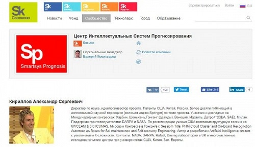 О резиденте известно, что он неоднократно получал патенты зарубежных стран, публиковал десятки статей в англоязычной научной периодике по научным темам, а также является «автором и разработчиком Artificial Intelligence систем с увеличением К-сложности».