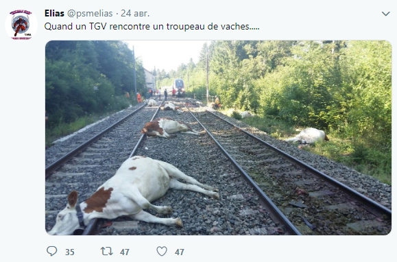 Стадо коров оказалось на пути экспресса Lyria… Двадцать из них мертвы или агонизируют. Это ужасно, — комментируют происшествие в Twitter французские пользователи.