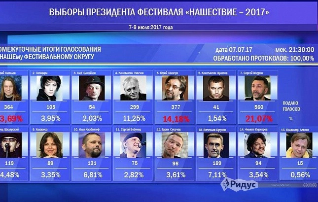 Выборы президента фестиваля будут идти ещё два дня, и ситуация может кардинально измениться. Прямо сейчас на «Нашествие» высаживается десант закоренелых алисоманов, которые вполне могут выдвинуть Кинчева в лидеры. «Ридус» продолжает следить за ситуацией на главном приключении лета.