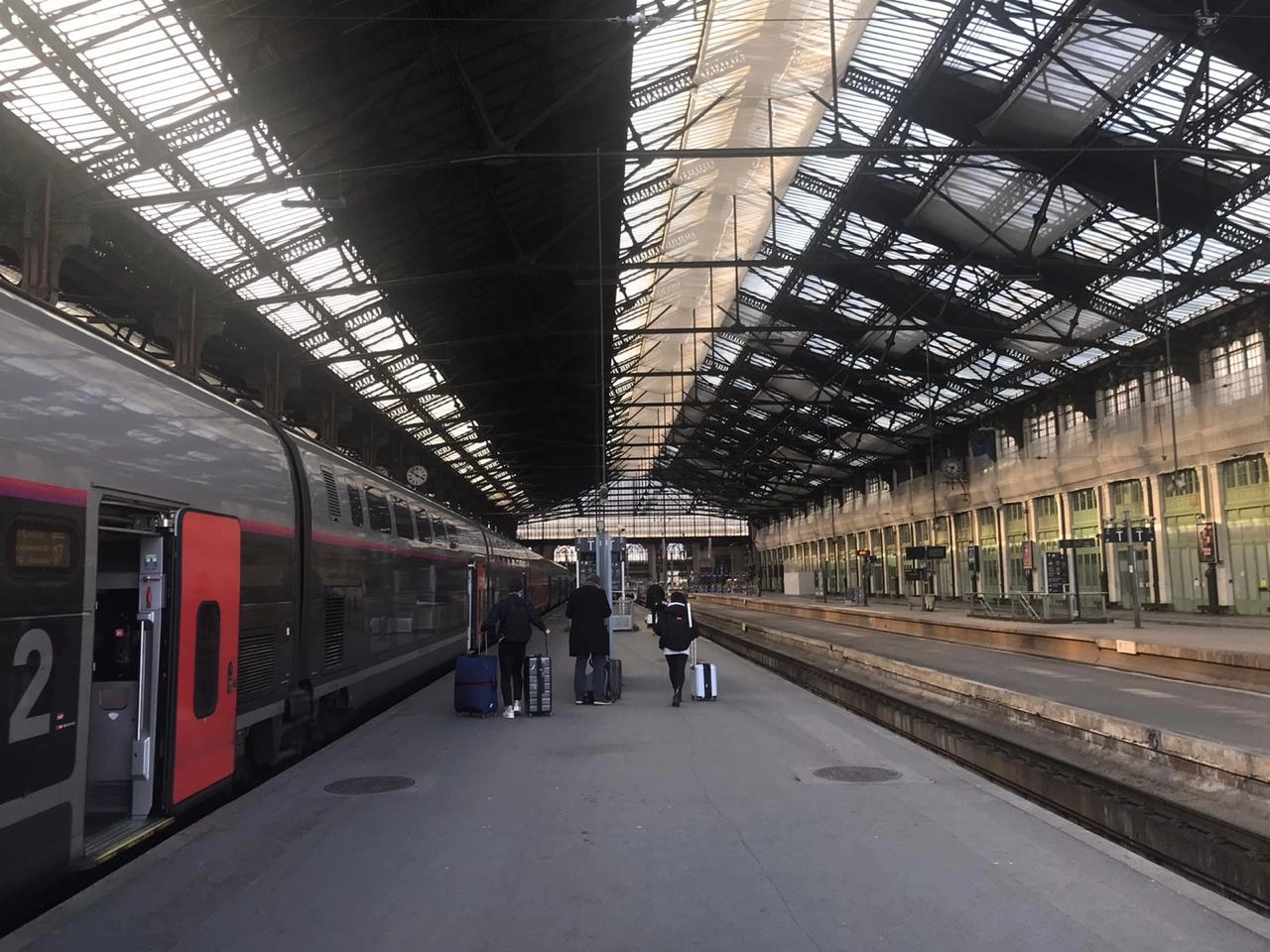 Тем временем появились тыкающиеся в закрытые двери люди с чемоданами на колесиках. Человек 15 собрались перед дверьми, соблюдая рекомендованную Макроном дистанцию в 1,5 метра, и тут, за 15 минут до поезда, двери открылись, автоматически. И мы все весело потопали на перрон.