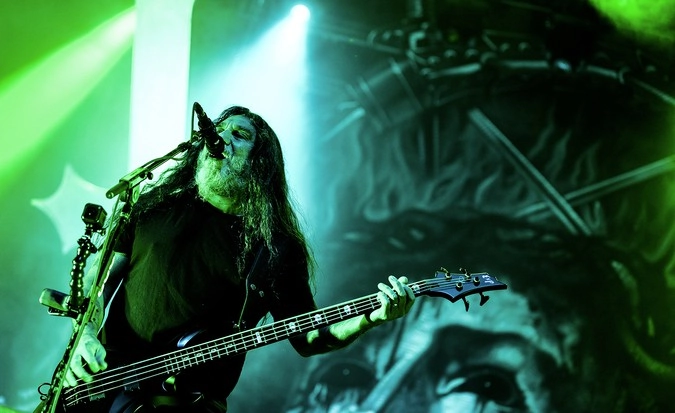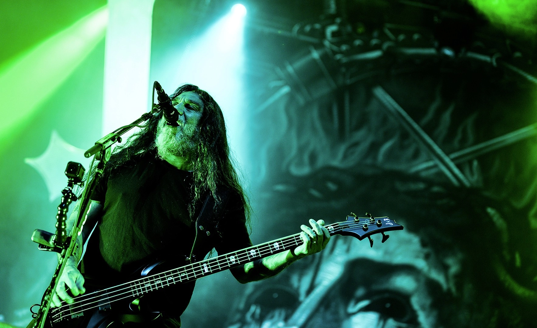 Сцену затянули, словно саваном, белым полотном. И под мелодичные звуки Delusions of Saviour на нем появились четыре красных готических креста, они медленно перевернулись, и понеслась зубодробительная Repentless. Взору публики предстал гигантский окровавленный лик Христа с обложки одноименной пластинки 2015 года и адские черти по бокам.