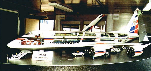 Поражал не только фюзеляж с двумя рядами иллюминаторов, но и крылья со складывающими консолями. Этот вариант позволял значительно уменьшить стояночные габариты машины. В результате КР-860 мог занимать на земле не больше площади, чем значительно меньший по размерам Боинг 747.