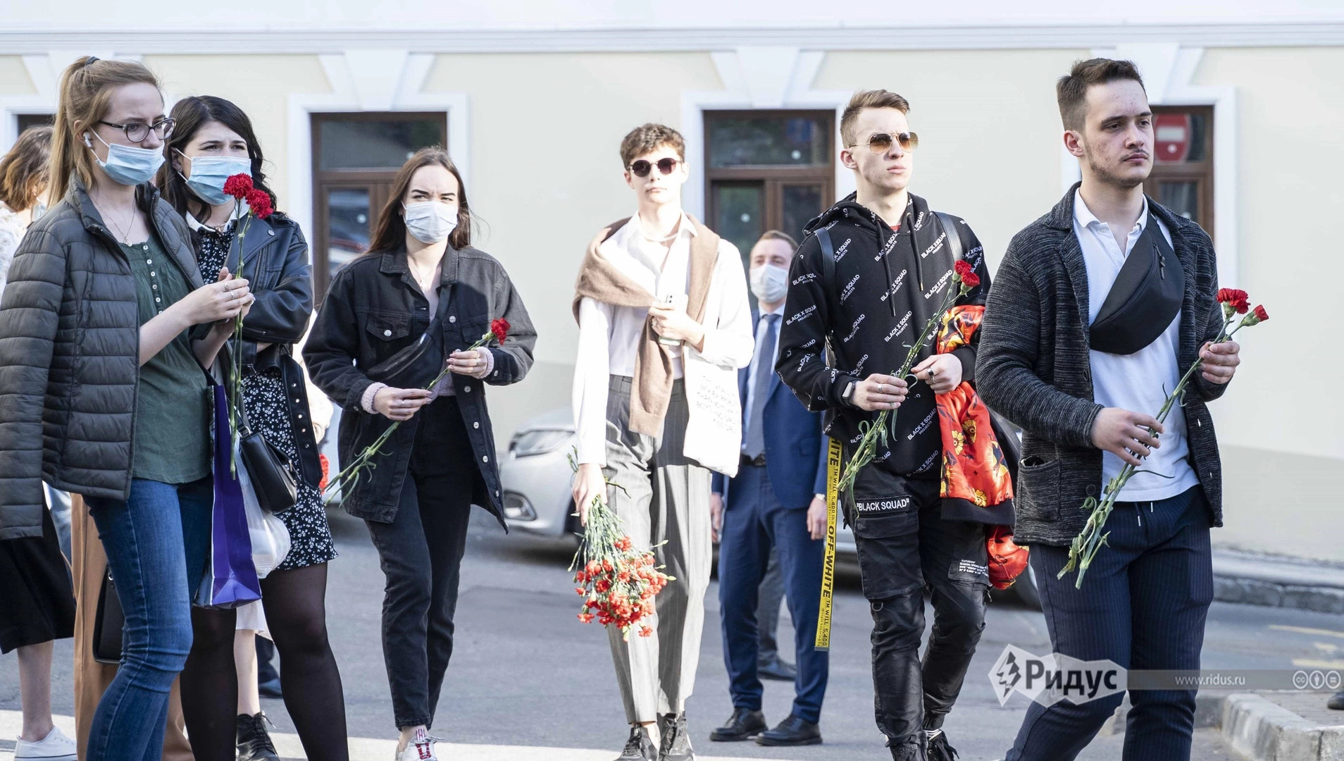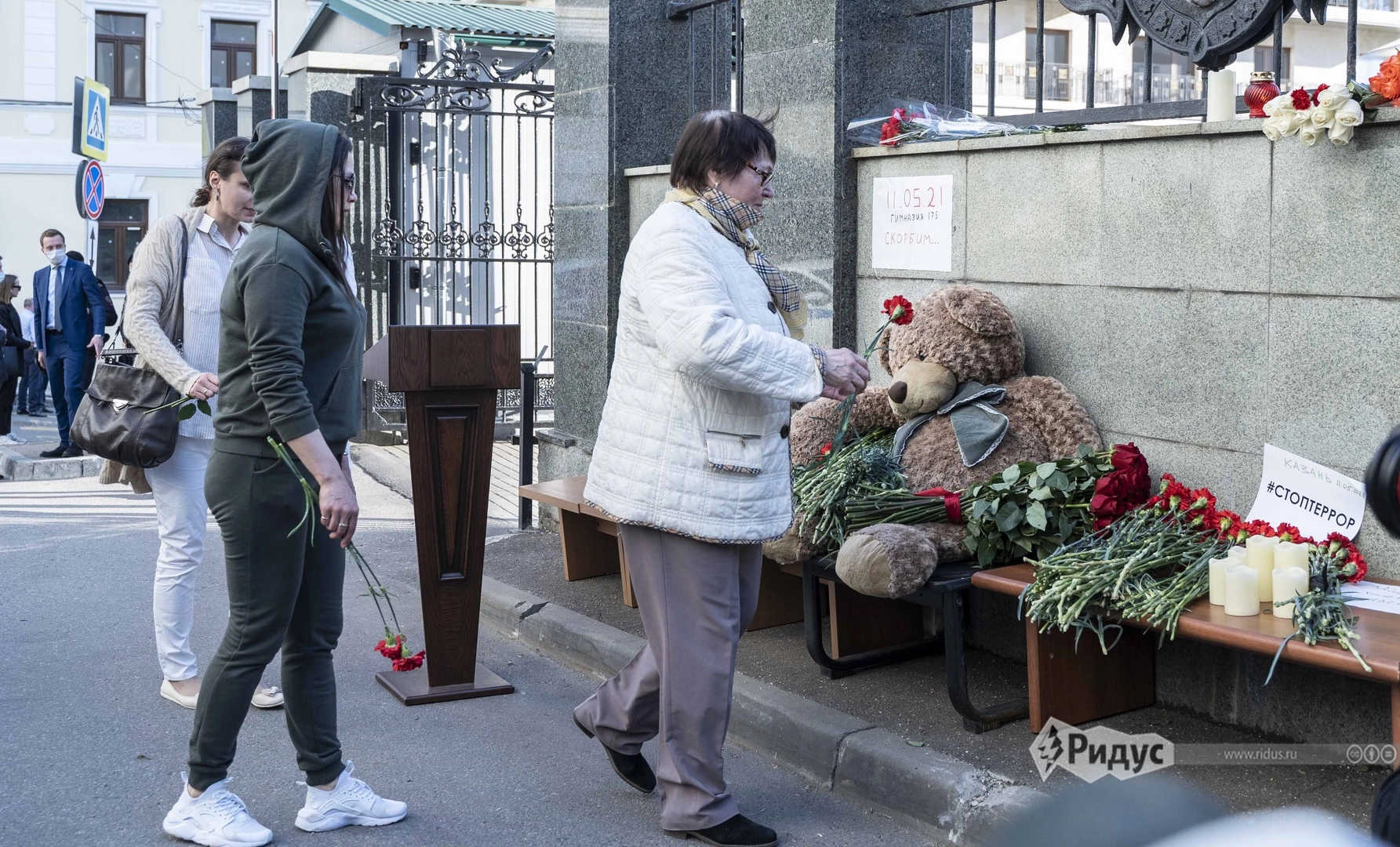 В Москве организовали стихийный мемориал у здания постоянного представительства Татарстана: люди возложили цветы, принесли мягкие игрушки и зажгли свечи в память о погибших во время стрельбы в 175-й школе в Казани.