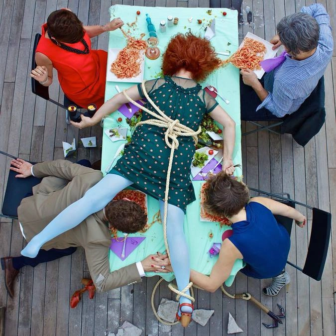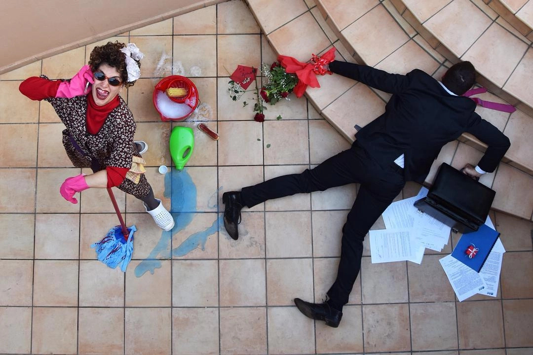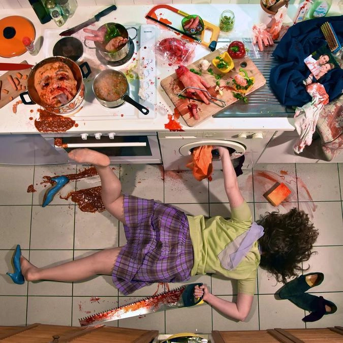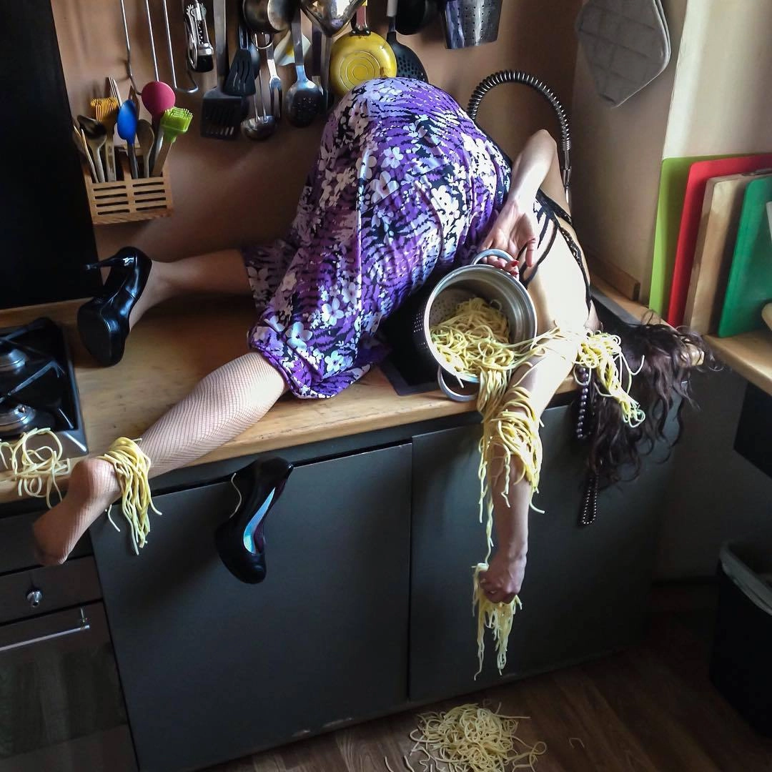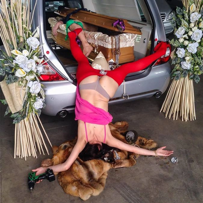 «Герои моих снимков достигли своего предела, они больше не могут притворяться. Каждый из них держит в руках какой-то объект, который не в силах выпустить из рук. Эта вещь — символ их фальшивой жизни. Я показываю трагедию через иронию», — говорит итальянский фотограф Сандро Джордано (Sandro Giordano), который создал необычный фотопроект «In Extremis (Bodies With No Regret)», который в русском варианте называется «Падение мира».