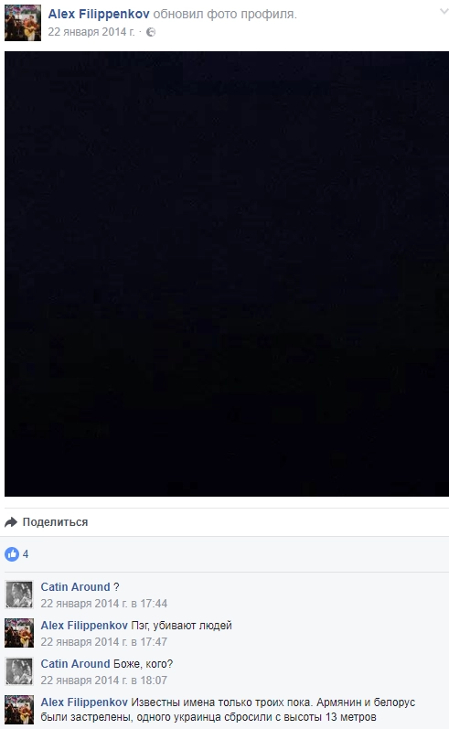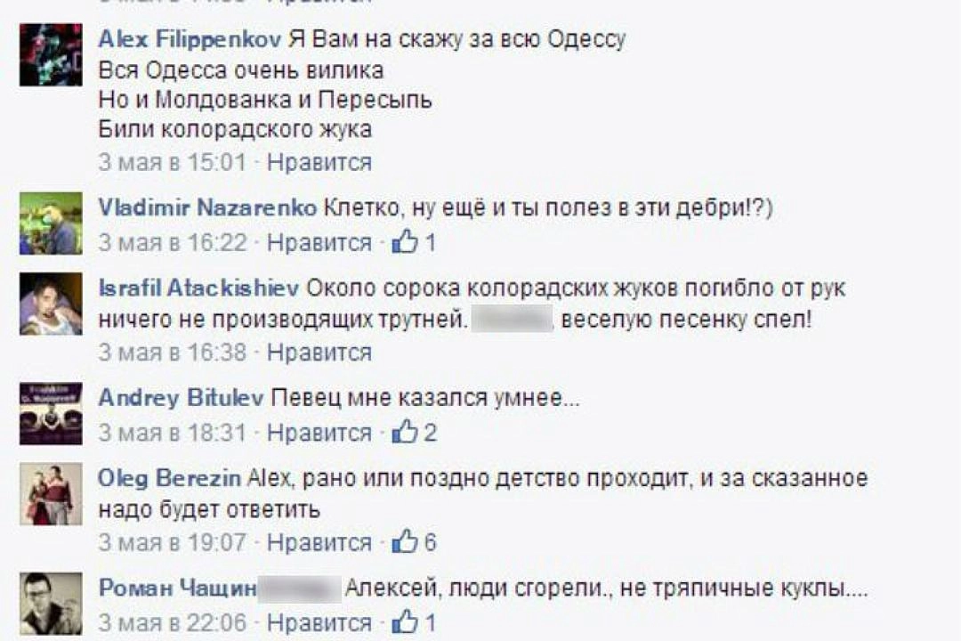 В 2014 году молодые люди с азартом комментировали трагедию в одесском Доме профсоюзов. Особенно отличился гитарист Алексей Филиппенков, сочинив веселую песенку про колорадского жука. В комментариях пользователи ужаснулись цинизму музыканта, но он отмахнулся: мол, чувства юмора у его собеседников совсем не осталось. Когда же в январе 2014 года во время переворота в Киеве погибли несколько человек, Филиппенков «надел» траурную аватарку и скорбел по поводу смерти людей. Также он не поддержал присоединение Крыма и выражал мнение, что референдум в Крыму прошел незаконно и был сфальсифицирован.