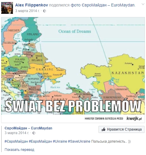 Подпись к картинке: «Мир без проблем»; Надпись на территории, где должна располагаться Россия: «Океан Мечты»