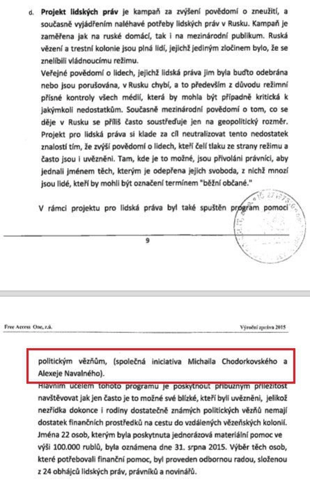 Документы, проливающие свет на тайные сделки Ходорковского с оппозиционерами, обнаружил публицист Илья Ухов: в своей статье на «Лайфе» он утверждает, что в 2015 году олигарх потратил на поддержку оппозиционных проектов порядка 16 355 000 чешских крон — около 40 миллионов рублей по курсу на тот момент. Среди получателей финансов Ходорковского — глава Фонда борьбы с коррупцией Алексей Навальный.