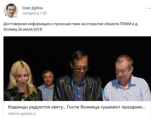 Однако глава района Олег Дубов написал в соцсети, что праздник открытия фонарей был сорван приехавшими в село гостями и сослался на общественно-политическую газету Оленинского района «Наша жизнь».