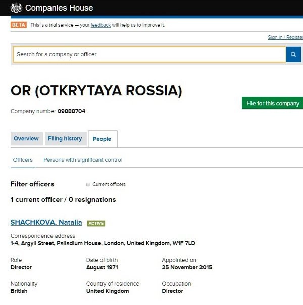 Организатором фирм-прокладок в Эстонии («MTU Free Access HR») и Чехии («Free Acess one, z. u») выступала Наталья Шачкова, и теперь ее имя вновь всплыло в Лондоне в качестве директора очередной «прачечной» фирмы — OTKRYTAYA ROSSIA, сообщает FLB.