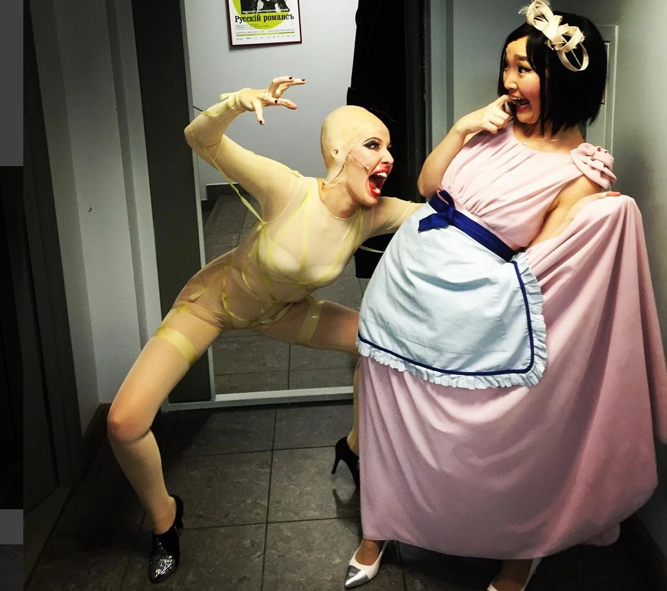 Ксения Собчак призналась, что она чудовище, извещает то же издание. С тех пор как она вышла замуж за Максима Виторгана, в ней открылся дар драматической актрисы. Вместе с супругом Ксения регулярно выходит на сцену Театра Наций в спектакле по пьесе Гоголя «Женитьба». Собчак досталась роль свахи Феклы Ивановны, и минувшим вечером Ксении удалось шокировать поклонников нетривиальной подачей своей героини. Готовясь выйти на сцену, Ксения сфотографировалась в коридоре театра вместе с партнершей по спектаклю — актрисой Сэсэг Хапсасовой. Одетая в красивое длинное платье Сэсэг в притворном ужасе пятилась от изогнувшейся в хищной позе Ксении. Костюм Собчак — облегающее боди желтого цвета — плотно облепил фигуру телеведущей. В комментариях к фотоблогу телеведущей ей посоветовали прекратить заниматься ерундой и начать уже рожать мужу детей.