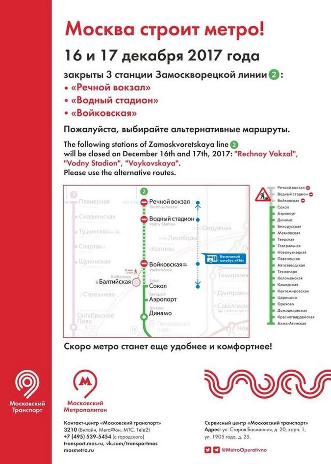 Напомним, объявления в метро гласят, что 16 и 17 декабря 2017 года сразу три станции Замоскворецкой линии будут вообще закрыты для пассажиров, эта мера необходима для для присоединения новой станции «Ховрино».