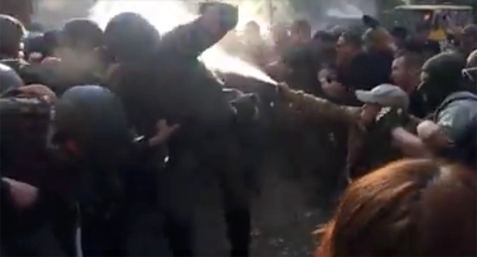 Телеканал «112 Украина» транслировал происходящее в прямом эфире. «Это столкновения возле суда. Видим, что использовали слезоточивый газ и палки. Люди были с палками, с дубинками», — сообщила ведущая.