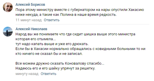 Хакасские пользователи Рунета активно обсуждают сообщение о скандале на планерке на станции скорой помощи в столице региона — Абакане. На совещании 10 ноября выступил министр здравоохранения республики Виктор Шевченко, который якобы в крайне оскорбительной форме раскритиковал девушку-фельдшера за попытку пристроить в больницу 90-летнюю пациентку с коронавирусом COVID-19.