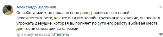 Но Виктор Шевченко оценил поведение фельдшера Полины Паниной и ее товарищей по экипажу как «нарушение врачебной этики». Как утверждает Telegram-канал Abakan Today, на планерке глава хакасского Минздрава заявил, что медработникам не следует даже намекать на дефицит больничных коек в республике, грозил разоблачителям увольнением с «волчьим билетом» и сравнивал их с паникерами военного времени.