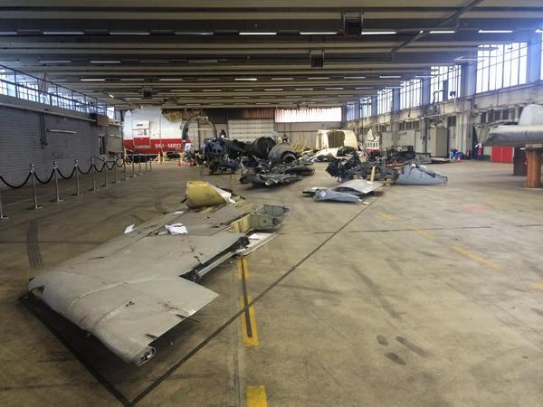 Обломки, из которых собран примерный макет самолета, в ближайшие дни смогут увидеть родственники и друзья погибших в катастрофе: их выставят на обозрение на авиабазе Гилзе-Рийен в Голландии.