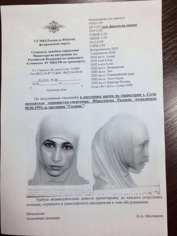 Речь идет об уроженке Северной Осетии Рузане Ибрагимовой 1991 года рождения по прозвищу Салима. По данным источника, близкого к силовым структурам, на днях она была замечена на улице Советской неподалеку от представительства МИД в городе Сочи, сообщает Blogsochi.ru.